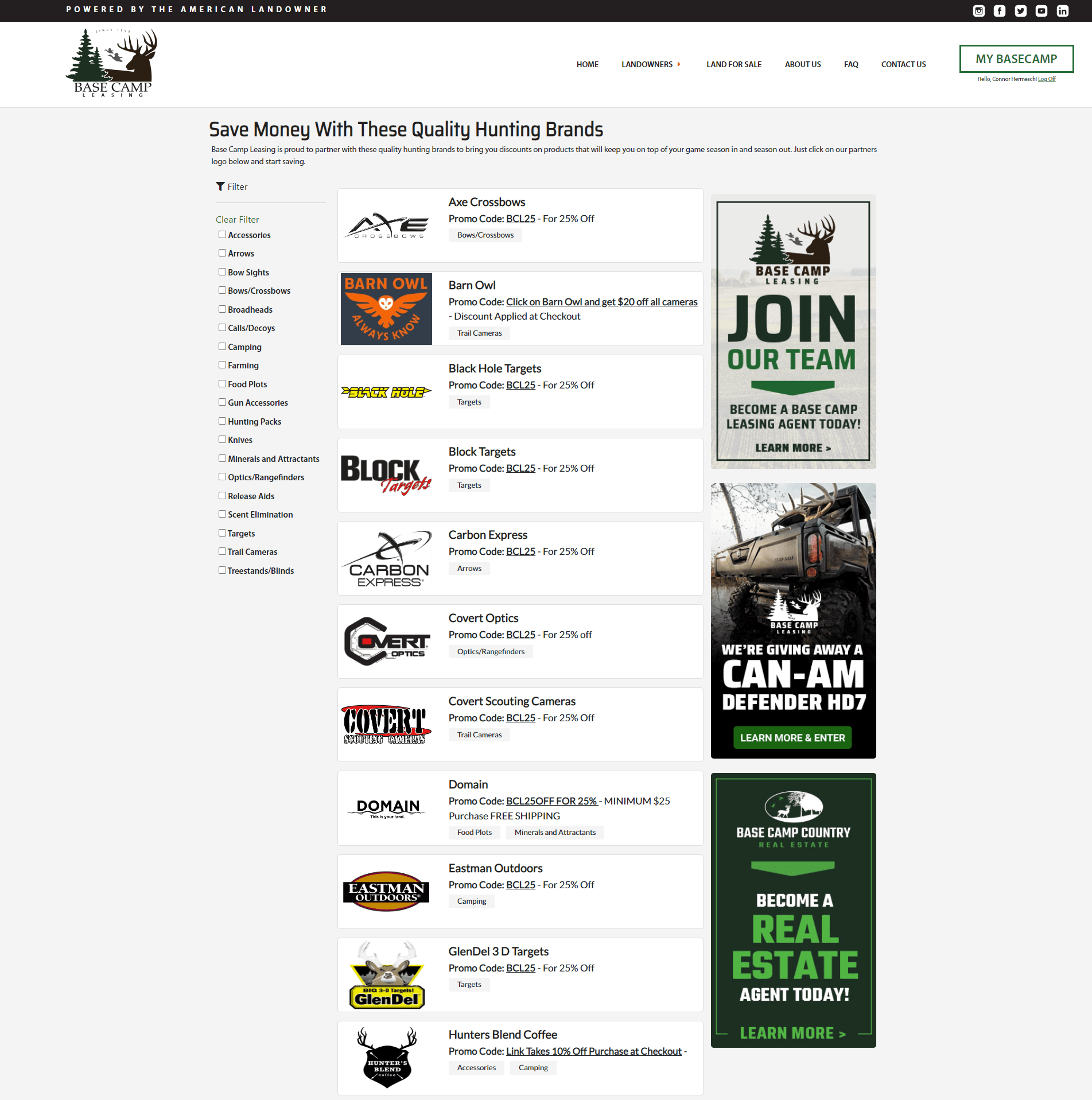 These members also have serious buying habits when it comes to hunting and outdoor gear. Hunting is their passion and spending money on it doesn’t take a back seat. American hunters spend over $26 billion annually on hunting-related products. Place your brand in front of hundreds of thousands of qualified members dedicated to hunting and the outdoor lifestyle by joining the Base Camp Leasing Affiliate Program.