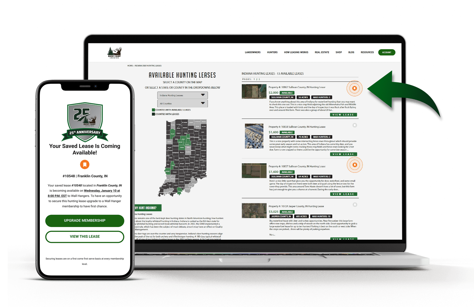 Save and receive notifications of availability for the leases you are interested in. When logged in to your 8 Point account you will have the ability to save unlimited hunting leases you wish to be notified by email that will be becoming available to Wall Hangers.